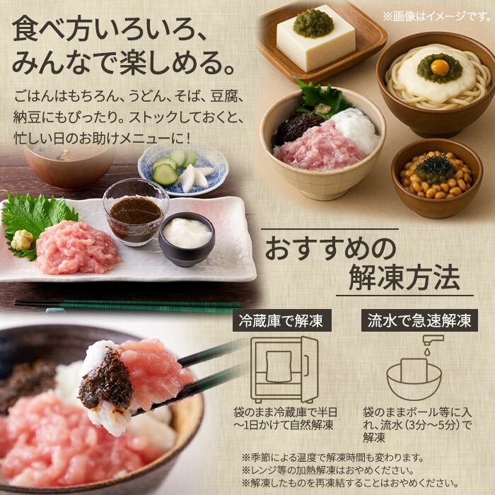 解凍して乗せるだけ!手軽で美味しい!3色丼(まぐろたたき身、とろろ、あかもく)5食セット